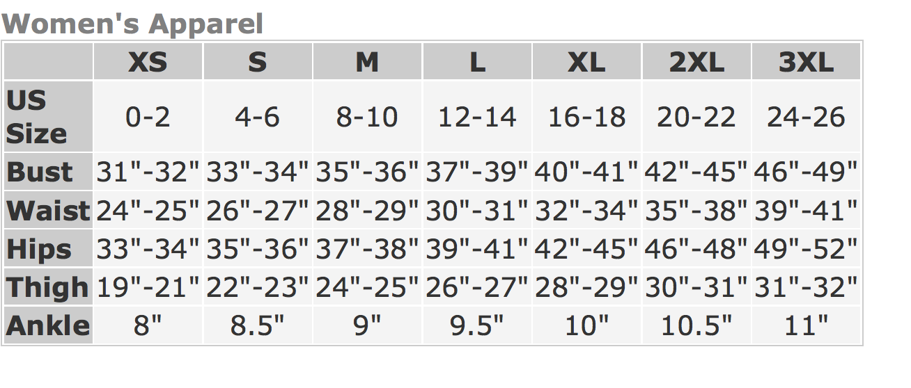 Sizes Available: XS, S, M, L, XL, 2XL & 3XL