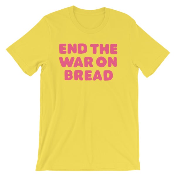 War on bread Short-Sleeve Unisex T-Shirt white,yellow, and black